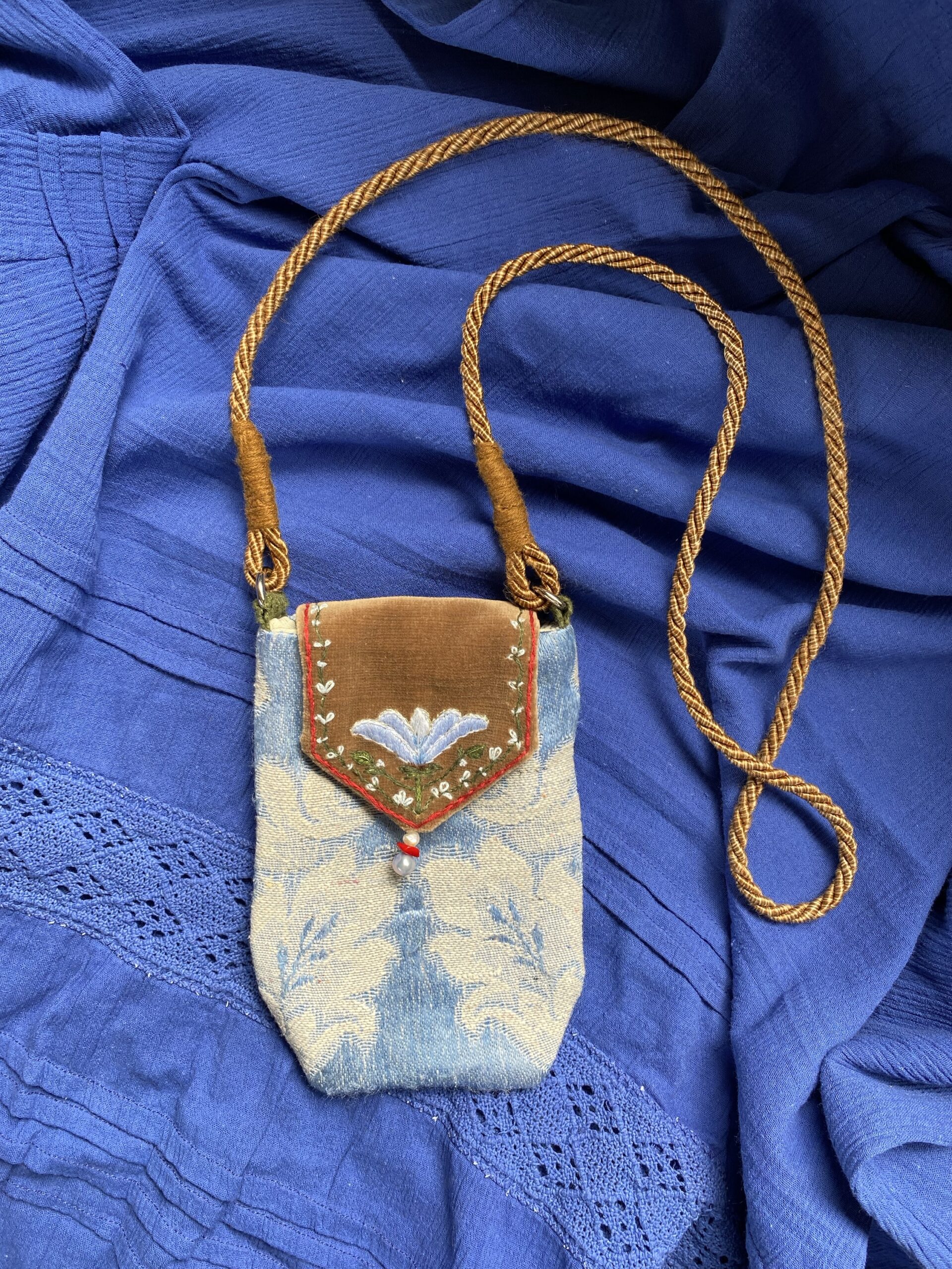 The Carlita Phone Bag is a small bag of 17 x 12 cm and is perfect for going out and about without taking all kinds of unnecessary things. The size fits a phone up to 17 cm (like an iPhone Plus). It closes with a flap with embroidery and a snap button. The strap is made of twisted cord and 105 cm in length.