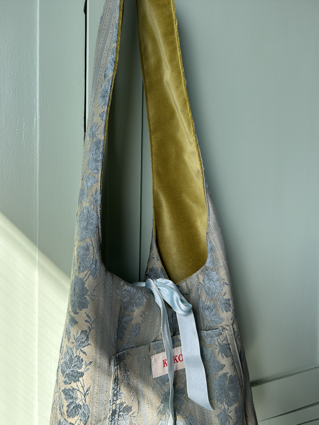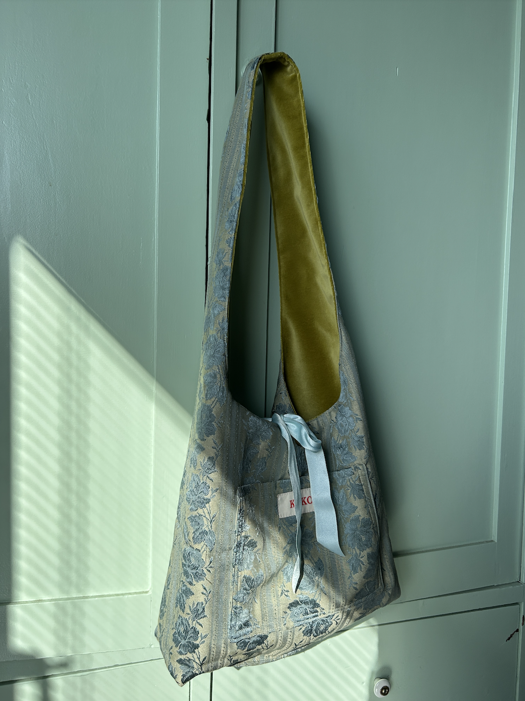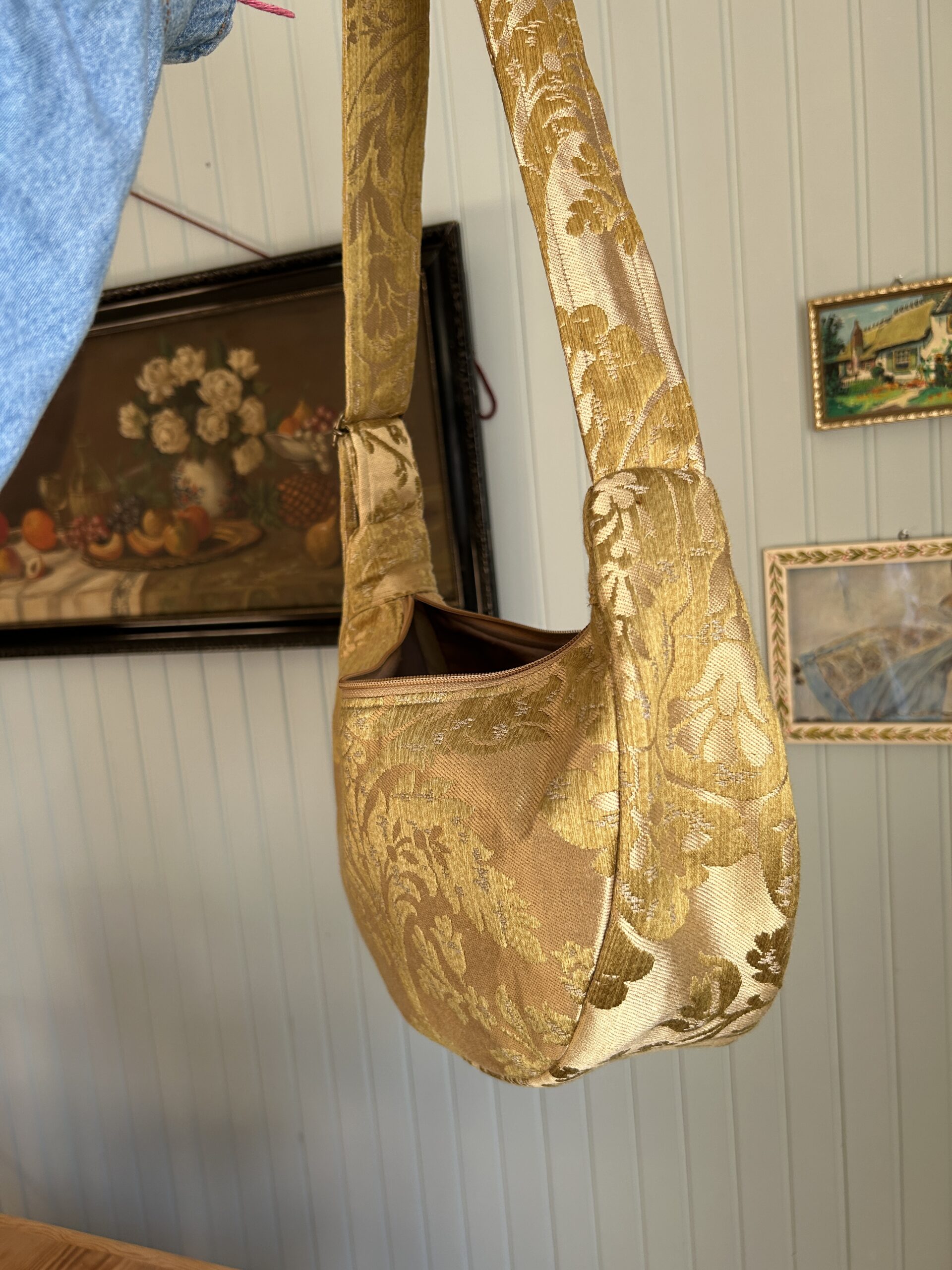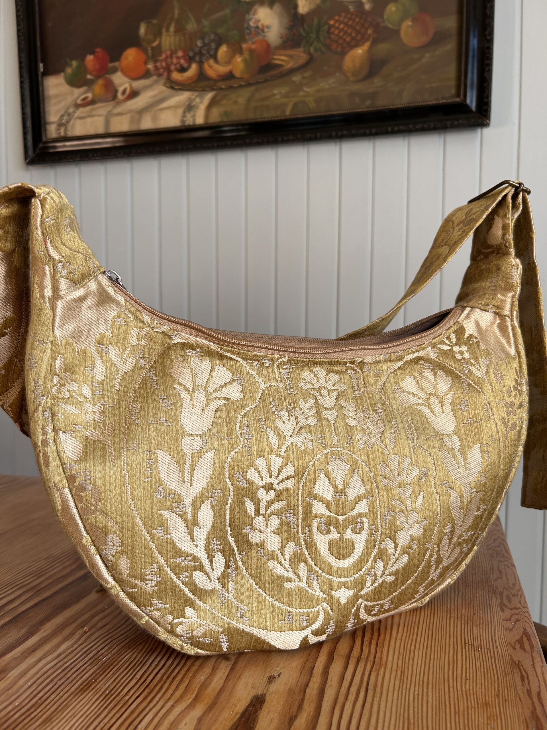 A perfect small sized pouch to hold your essentials. Made with vintage and antique fabrics & trims, and fully lined. Closes with a zipper.