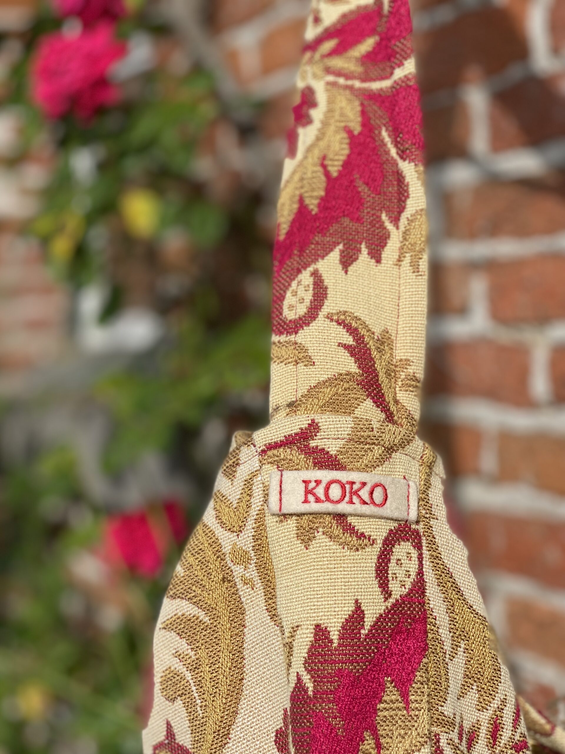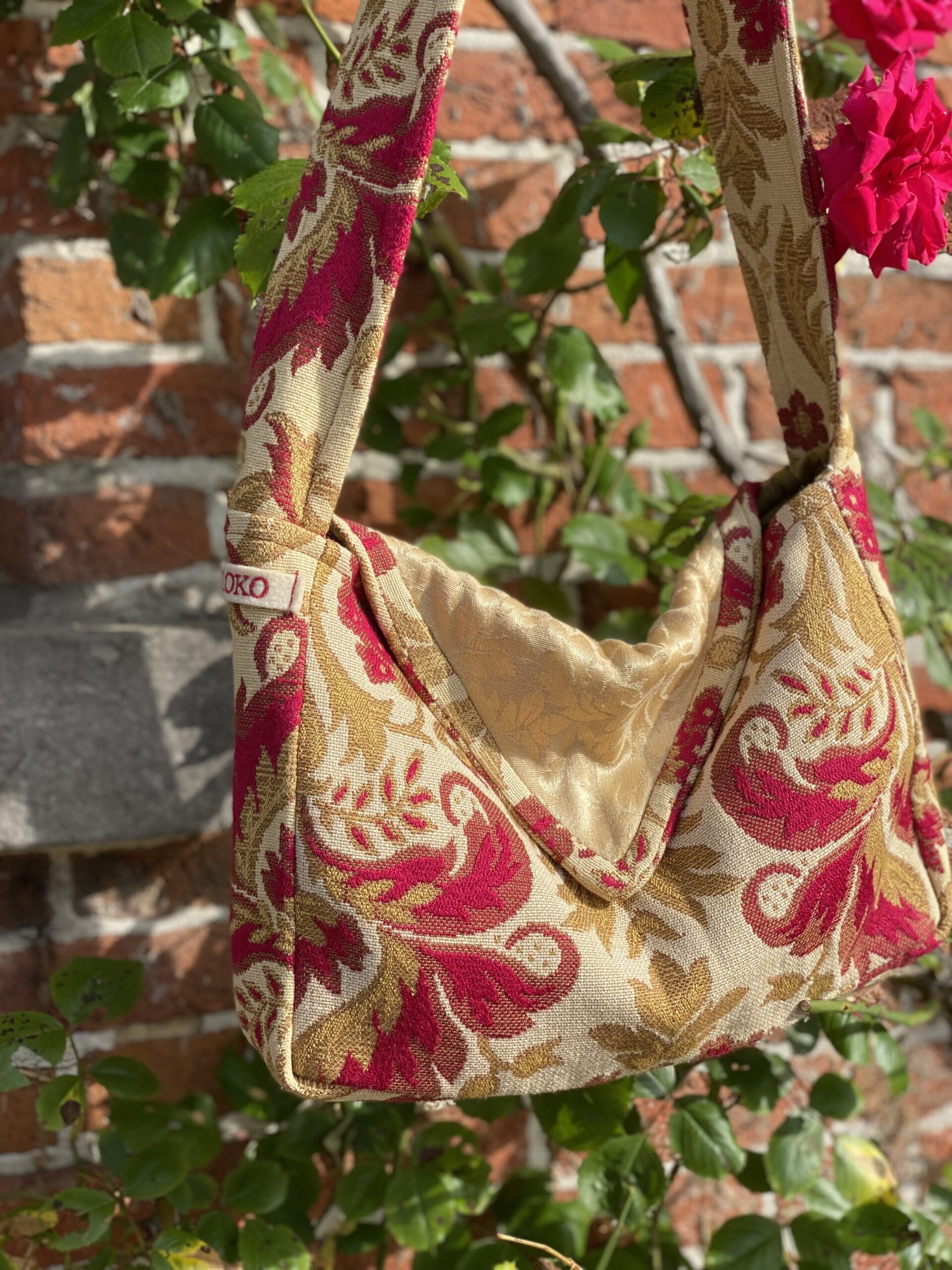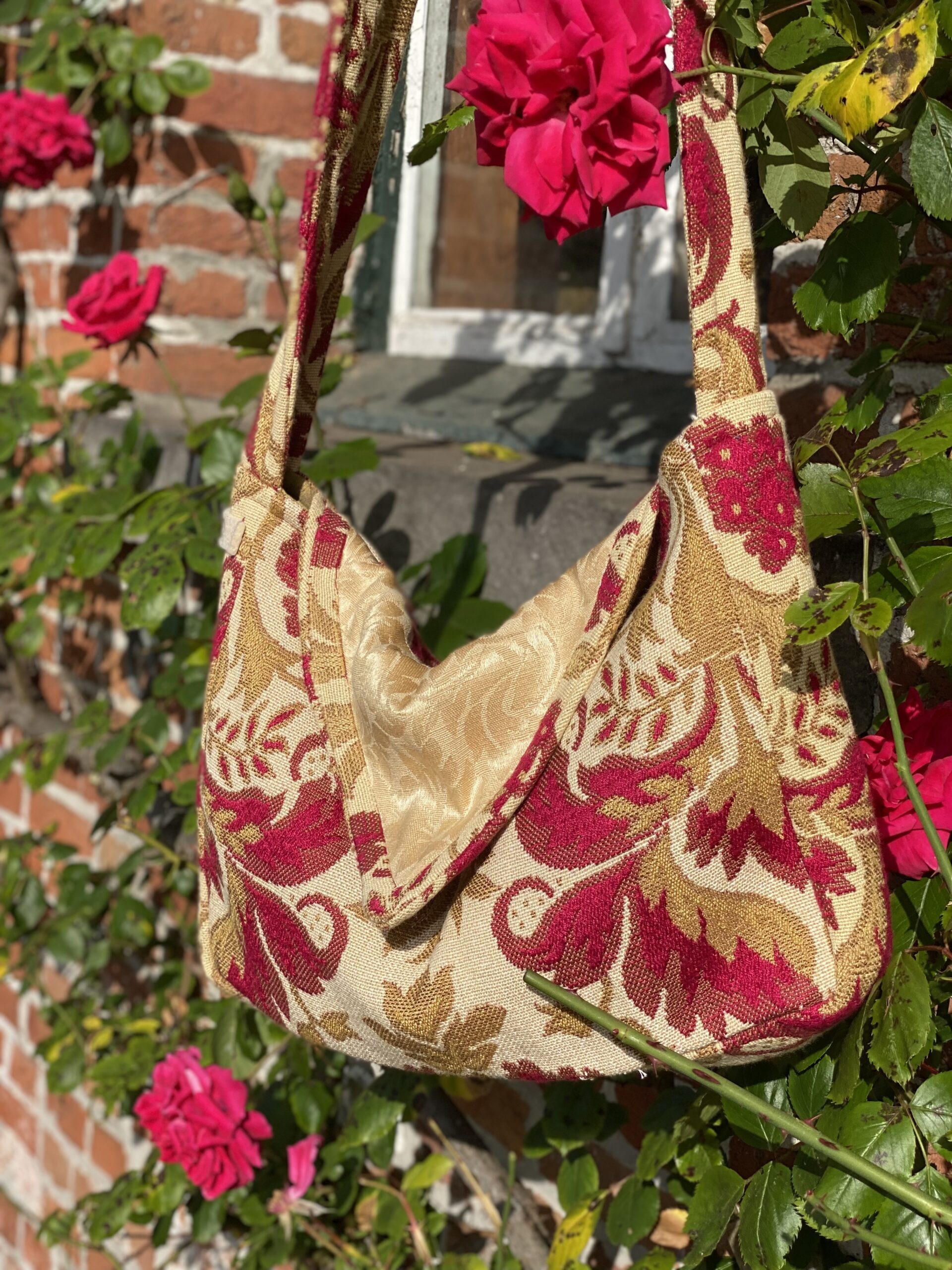 A perfect small sized pouch to hold your essentials. Made with vintage and antique fabrics & trims, and fully lined. Closes with a zipper.