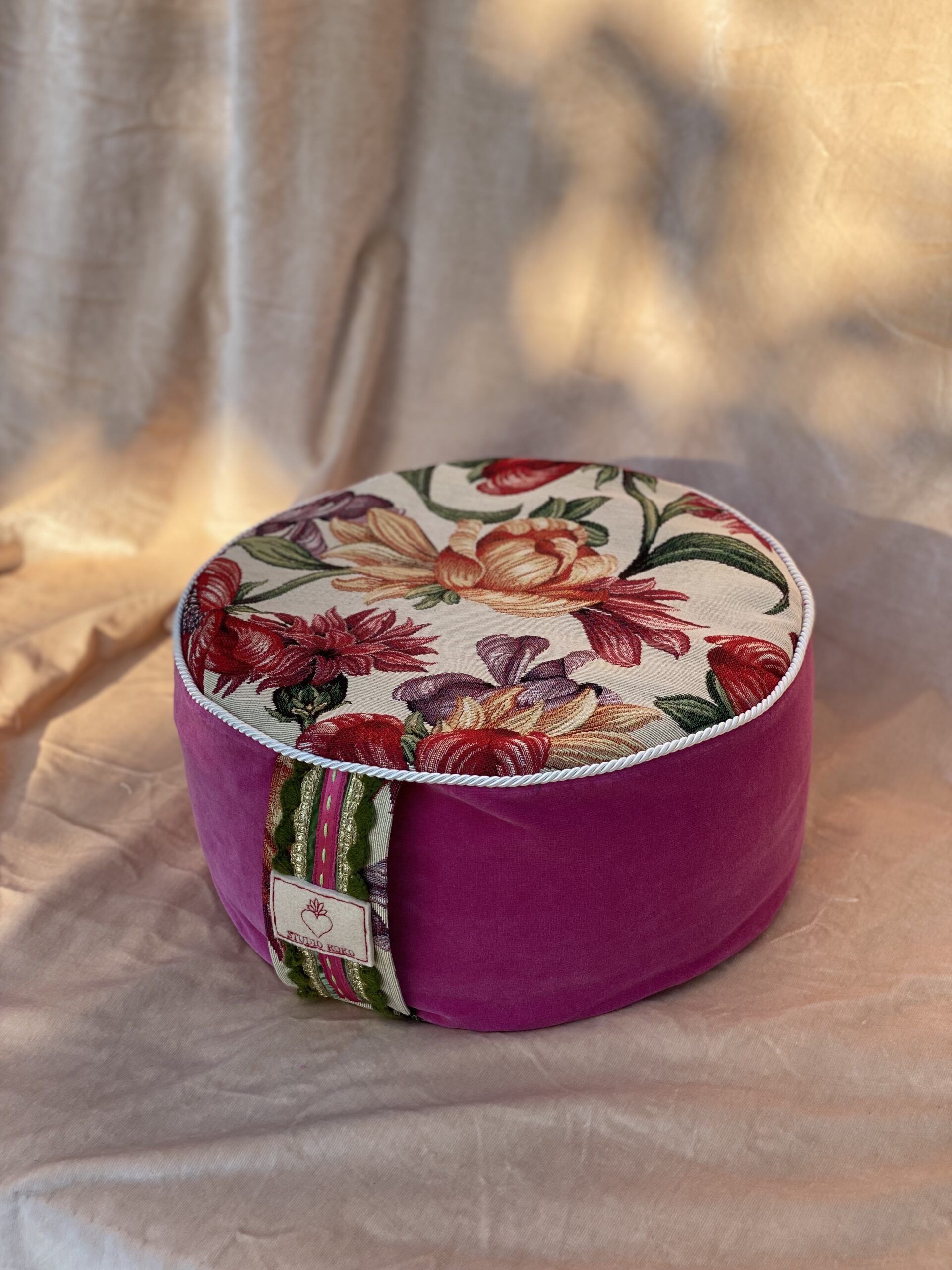 Alle kussens komen standaard met een binnenhoes, die te bereiken is via de rits aan de onderkant. Door het extra brede handvat neem je het kussen overal gemakkelijk mee naartoe. Niet alleen voor je yoga en meditatie practice kun je het kussen gebruiken, het staat ook nog eens mooi in je interieur! Handgemaakt in studio KOKO, een one-of-a-kind meditatiekussen van vintage materialen.