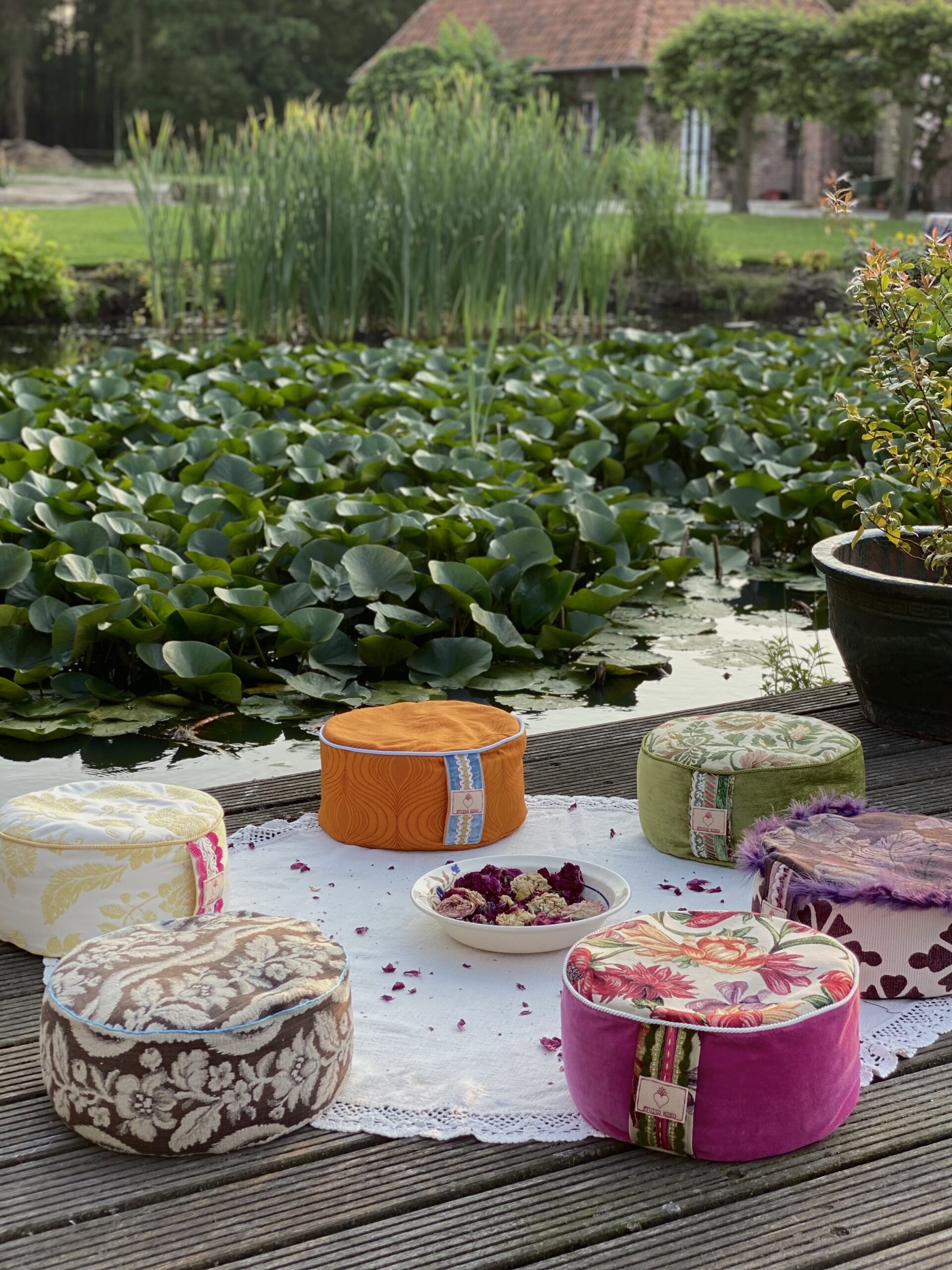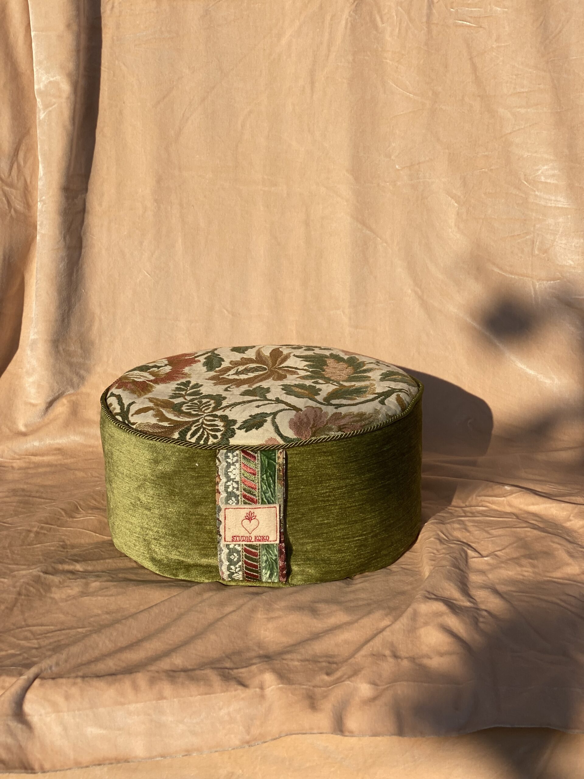 Alle kussens komen standaard met een binnenhoes, die te bereiken is via de rits aan de onderkant. Door het extra brede handvat neem je het kussen overal gemakkelijk mee naartoe. Niet alleen voor je yoga en meditatie practice kun je het kussen gebruiken, het staat ook nog eens mooi in je interieur! Handgemaakt in studio KOKO, een one-of-a-kind meditatiekussen van vintage materialen.
